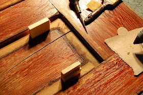 Oak wood panels are repaired in much the same way.